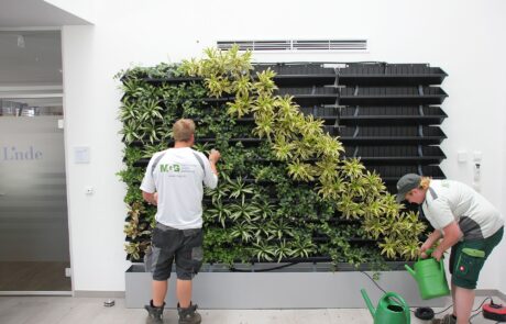 Unsere grünen Wände sind vertikale Begrünungssysteme mit einem integrierten Bewässerungssystem. Sie sorgen für bessere Luftfeuchtigkeit, ein angenehmes Raumklima und setzen gleichzeitig optische Highlights.